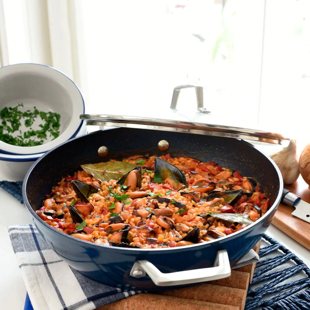 Sus asas de acero inoxidable te proporciona un agarre firme y te permiten tanto usar la cacerola en el fuego como en el horno (hasta 230ºC). Gracias a su base de aluminio forjado, el calor se distribuye de manera uniforme para una cocción perfecta. Y con su revestimiento antiadherente Quantanium Whitford®, cocinarás de forma más saludable y fácil. ¡Además, es apta para todo tipo de fuegos!