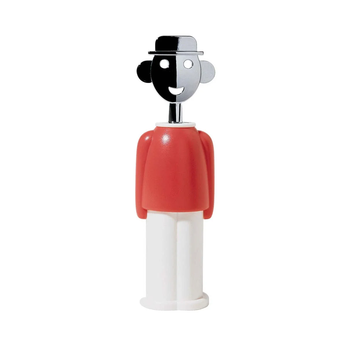 Diseñado por el prestigioso Alessandro Mendini, este sacacorchos representa un personaje con la icónica sonrisa que acompaña y forma parte de todas sus creaciones. Es casi imposible ver este sacacorchos y que no se te dibuje una sonrisa en la cara.