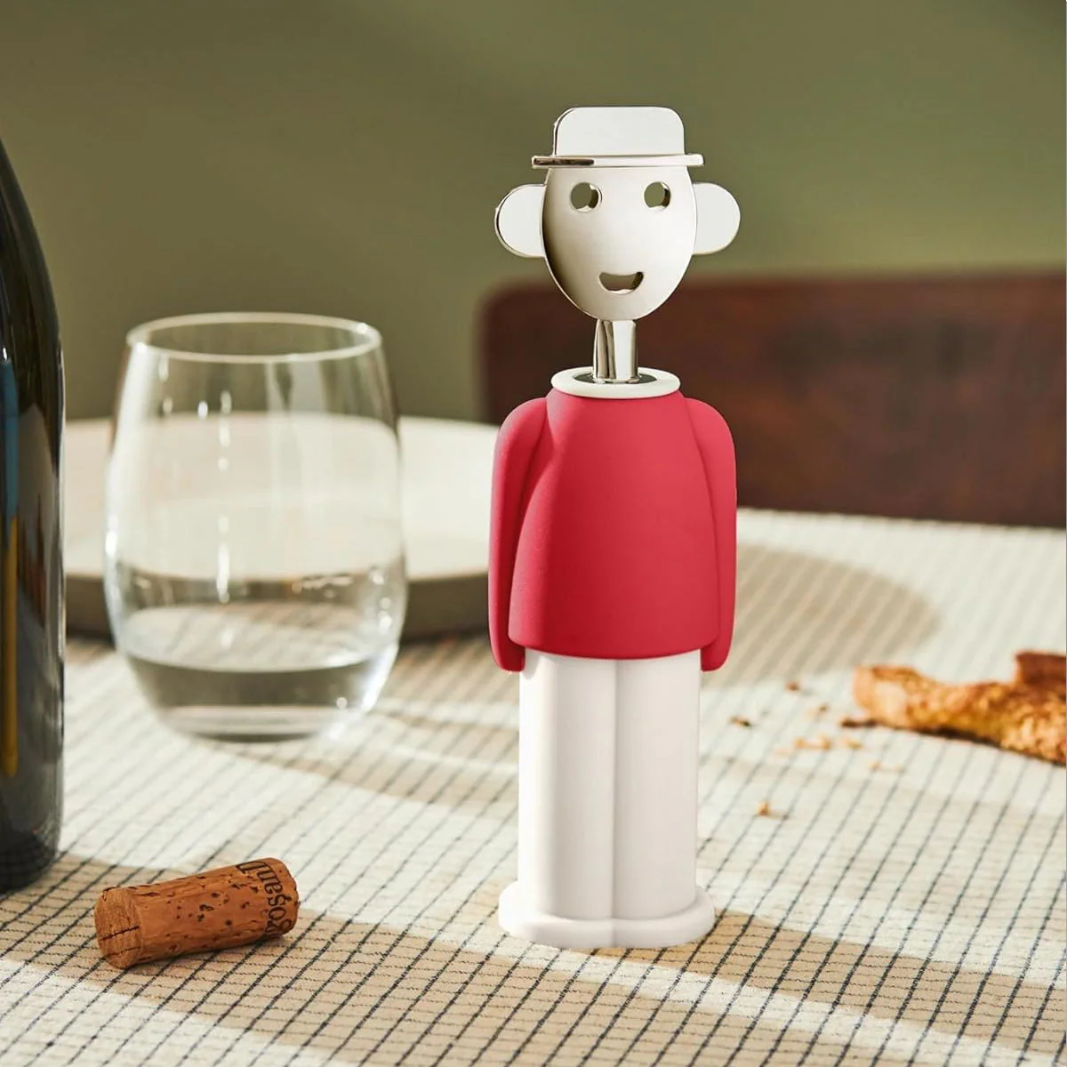 Después de descubrir este Sacacorchos en resina termoplástica Alessandro Mendini no querrás saber nada de los sacacorchos tradicionales y no nos extraña que sea así. Este sacacorchos es tan ingenioso y divertido que contagia buen rollo y hace que abrir cualquier botella de vino sea todavía más festivo.