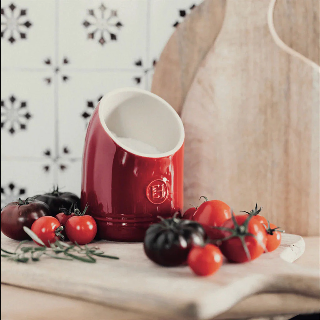 El nuevo salero de cerámica Emile Henry es la solución perfecta para almacenar y tener la sal siempre al alcance de la mano, añadiendo además un toque de estilo a tu encimera. Se trata de la versión actualizada y más actual del tradicional salero Emile Henry en forma de chimenea, ahora con una línea cien por cien atemporal y un toque que combina a la perfección elegancia, tradición y contemporaneidad.