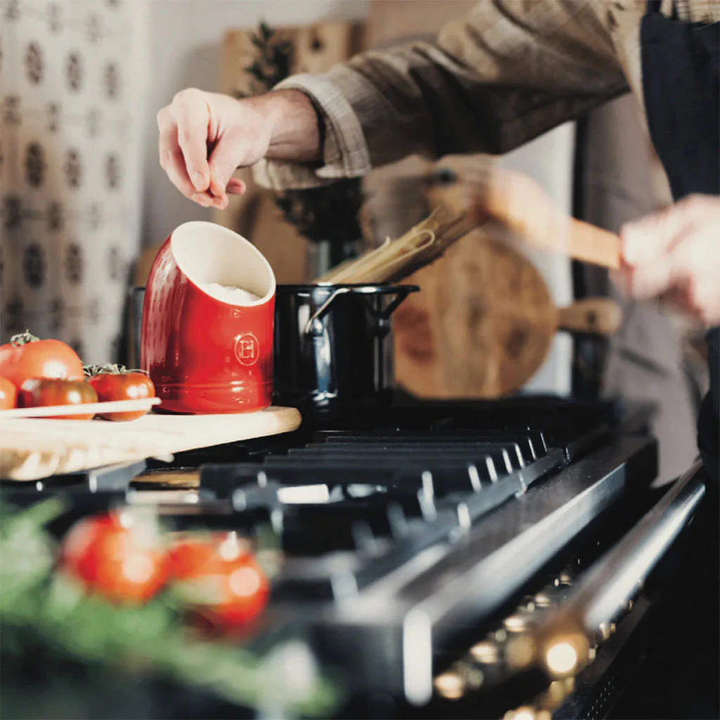 El diseño moderno y las líneas elegantes del salero Emile Henry lo convierten en un accesorio que se integra con estilo en cualquier cocina. Ideal para lucirlo en la encimera, junto a la estufa o en una repisa, su color y forma atemporal aportan un toque sofisticado.