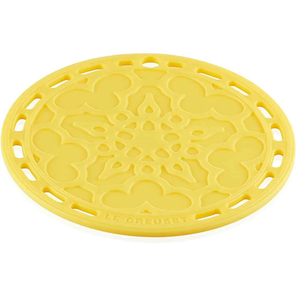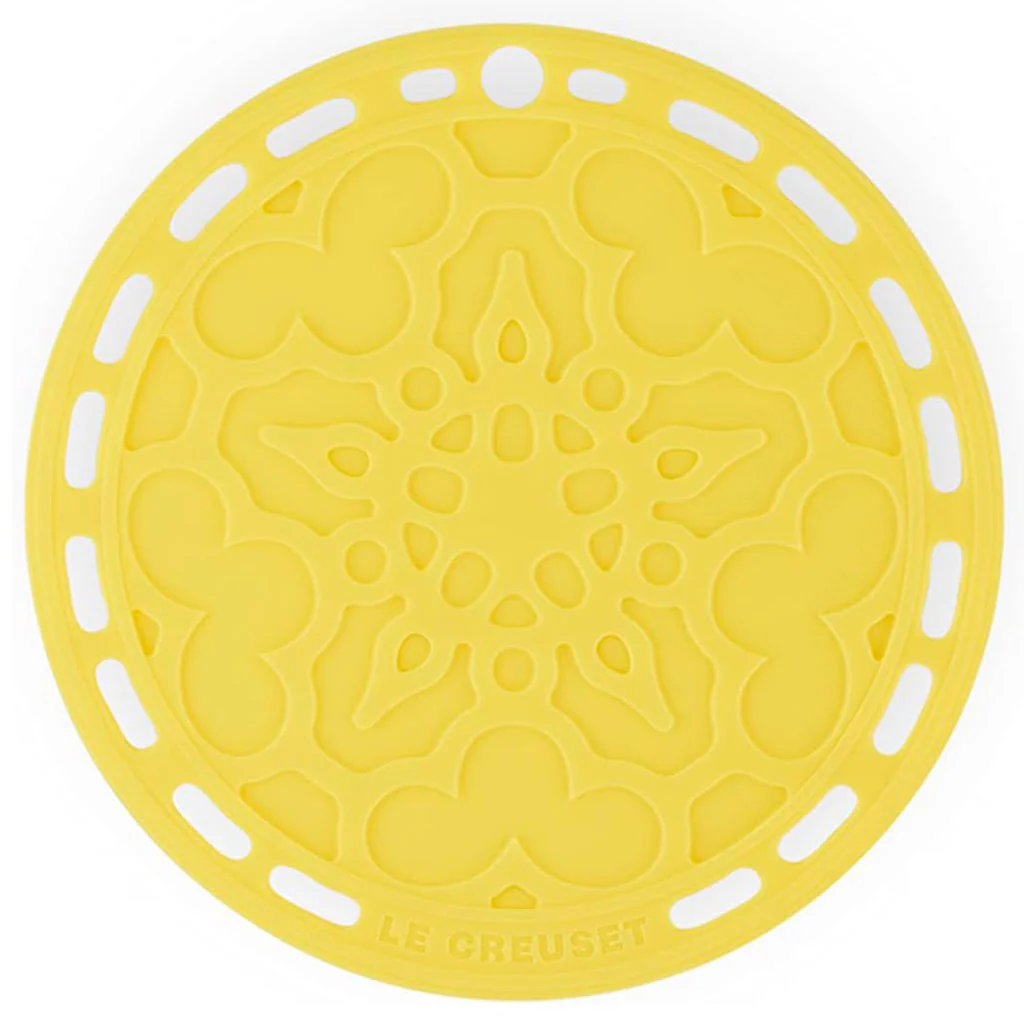 El Salvamanteles de silicona French de Le Creuset combinará de maravilla con tu skillet o tu cocotte, mientras mantiene a salvo tus manteles y llena de color tu mesa al presentar tus recetas. Es flexible, duradero y resistente al calor.