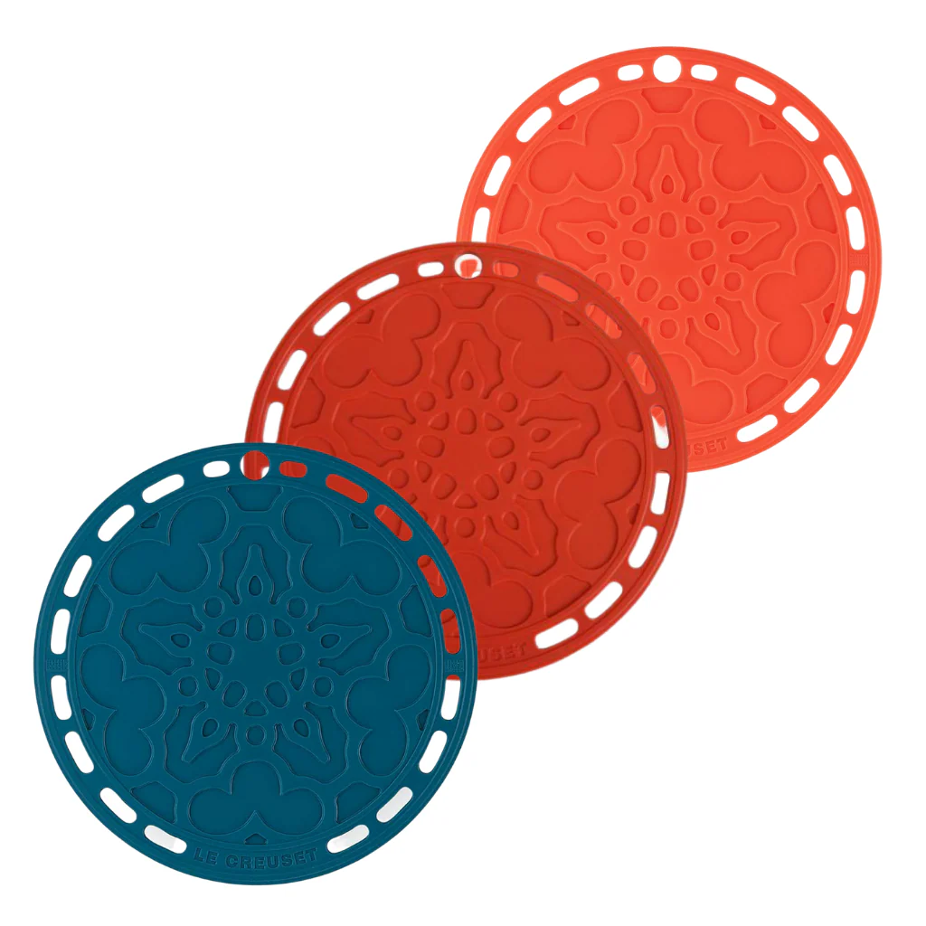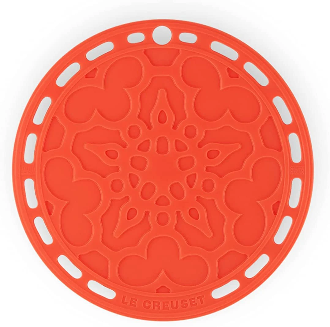 El Salvamanteles de silicona French Le Creuset combinará de maravilla con tu skillet o tu cocotte, mientras mantiene a salvo tus manteles y llena de color tu mesa al presentar tus recetas. Es flexible, duradero y resistente al calor.