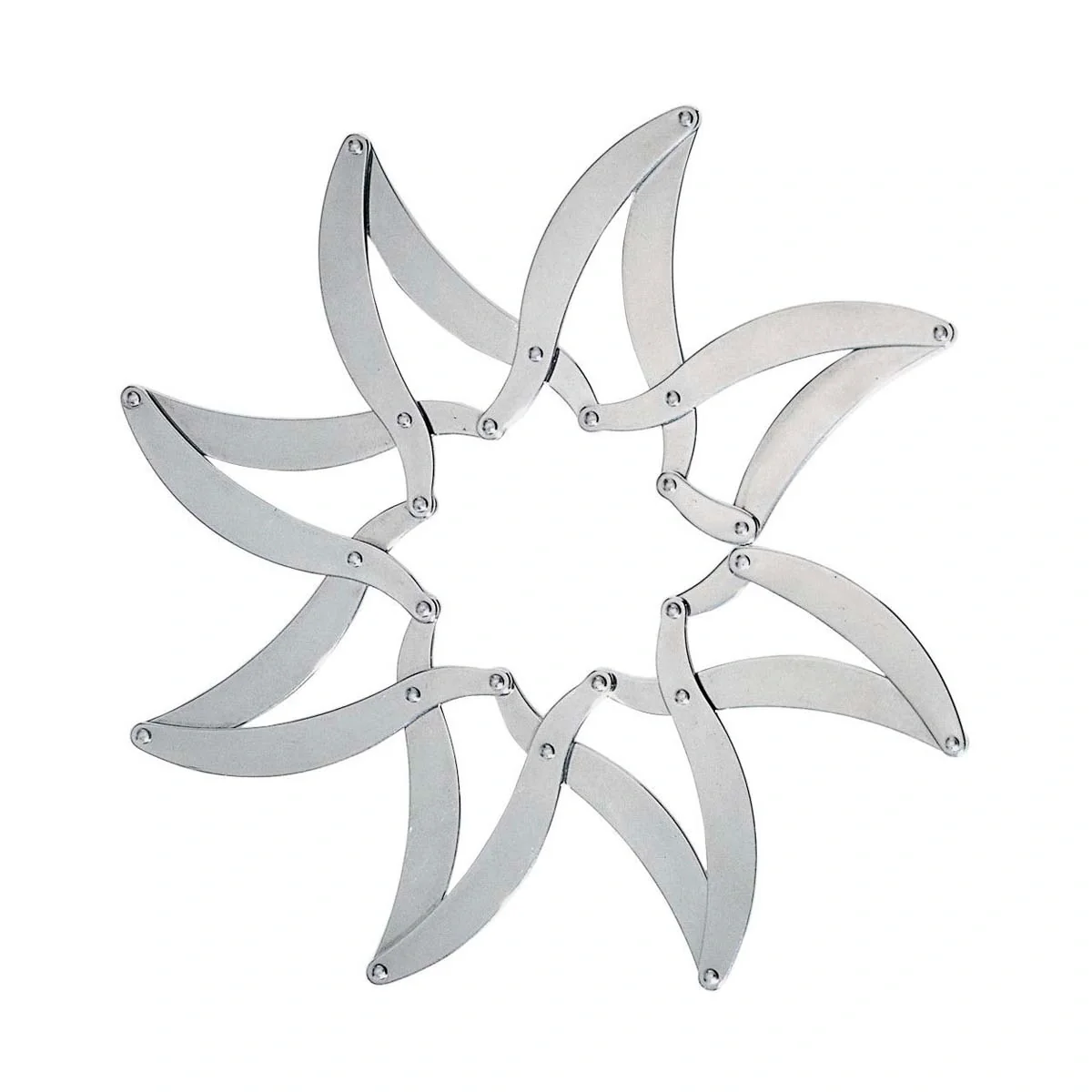 ¿Estás cansado de que se estropeen los manteles cuando traes platos o paellas calientes a la mesa? ¿El salvamanteles que tienes solo te sirve cuando cocinas con las paellas pequeñas? Pon solución a esto gracias al salvamanteles extensible de acero inoxidable ¡Augh! Alessi. Con este salvamanteles extensible podrás proteger la mesa de cualquier olla, bandeja o sartén aunque sea grande.