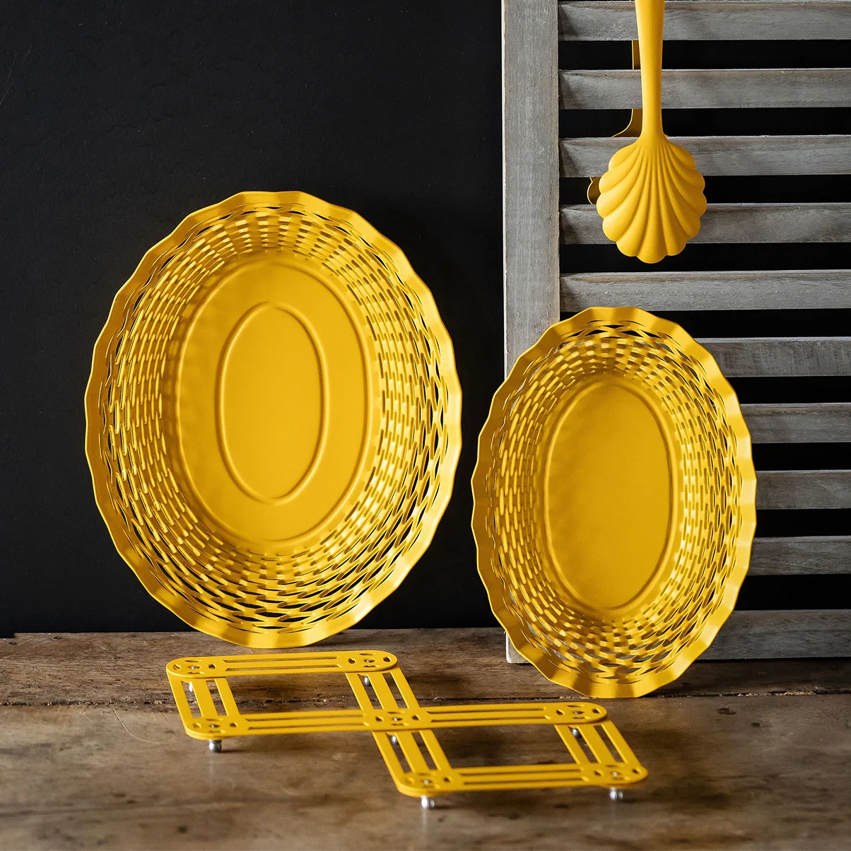 El Salvamanteles extensible inox Vintage de Roger Orfevre es la herramienta más funcional y colorida para proteger tus mesas y encimeras de cualquier cazuela, sartén o bandeja caliente que coloques encima. Fabricado en acero inoxidable, su diseño tradicional de acordeón permite abarcar una amplia superficie, por lo que es ideal tanto para utensilios pequeños, como para las cacerolas y paelleras de mayor base.