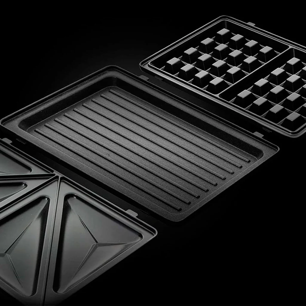 - 3 placas intercambiables: sándwich, gofre y grill.