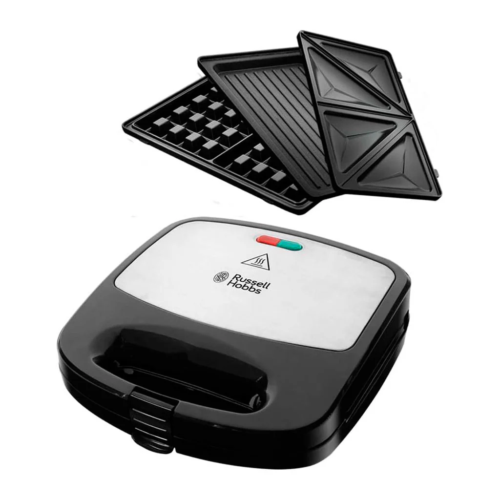 La Sandwichera 3 en 1 de placas hondas Russell Hobbs es un electrodoméstico versátil y práctico que te permite cocinar a la parrilla, preparar elaborados sándwiches y deliciosos gofres.