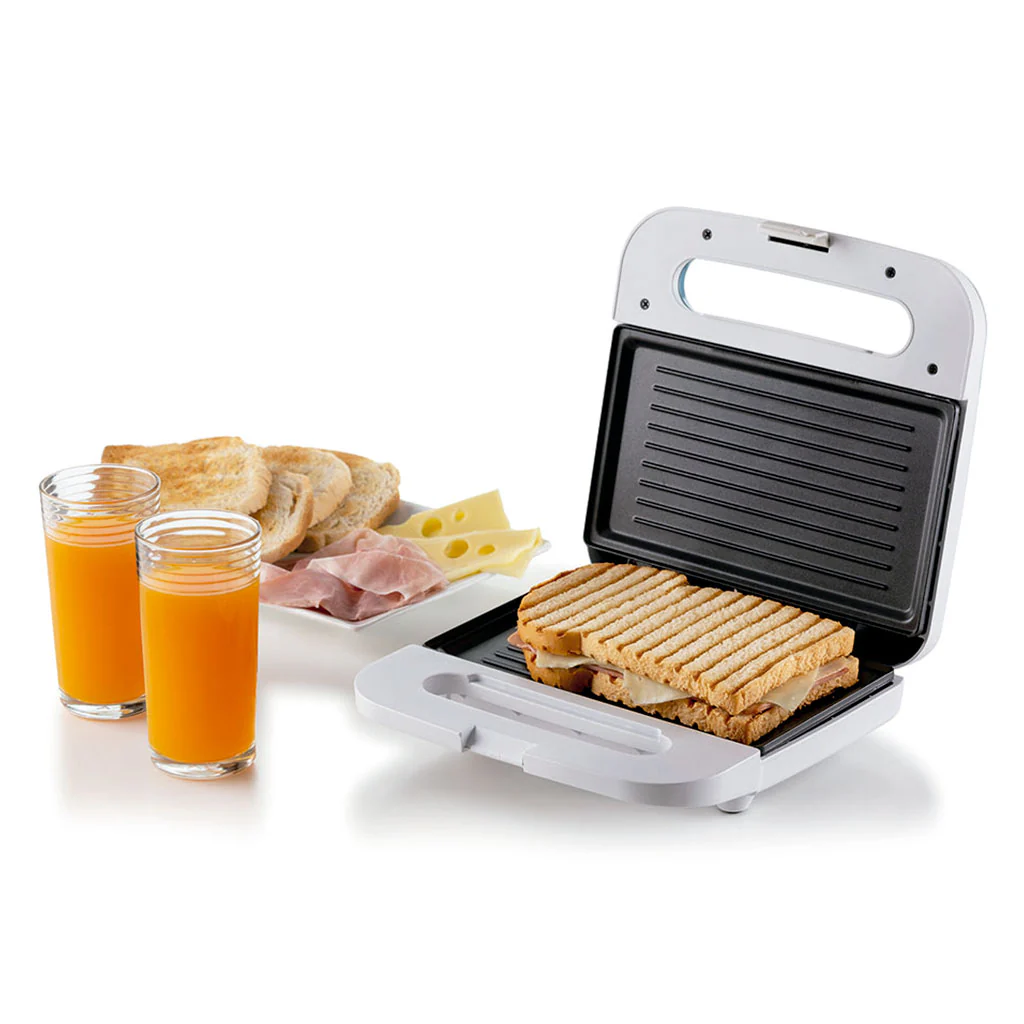Con esta Sandwichera Breakfast Ariete podrás preparar desayunos deliciosos y elaborados para empezar tu día con más fuerza que nunca. Su placa con revestimiento antiadherente, te permitirá confeccionar todo tipo de sándwiches, pan tostado, paninis u otros complementos perfectos para tu desayuno sin que se te peguen.