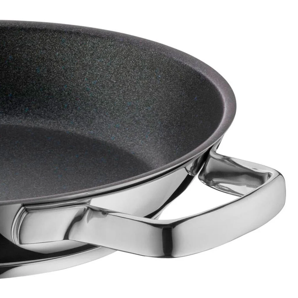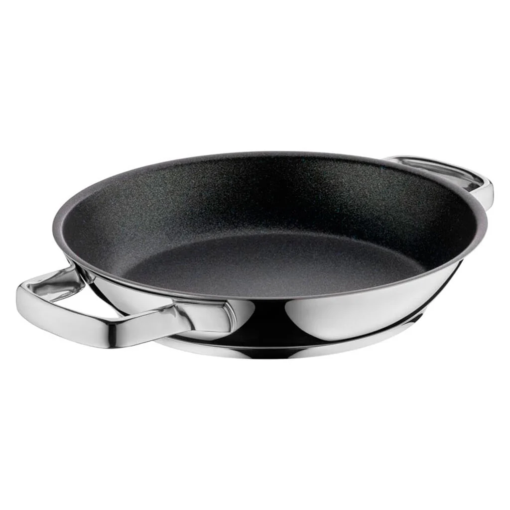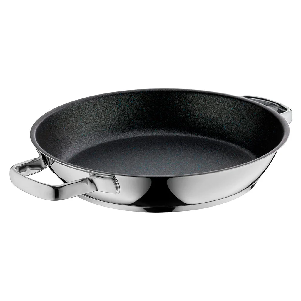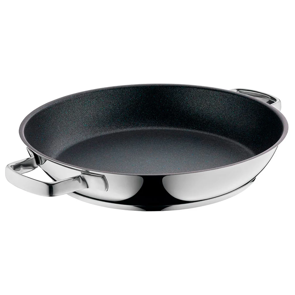 Sartén, paellera, cazuela baja, rustidera… con la Sartén 2 asas multiusos Permadur® Advance WMF tendrás el utensilio que necesites en cada ocasión, para cocinar todas tus deliciosas recetas. Esta versátil sartén te proporciona una amplia superficie de cocción y una generosa altura, perfectas para freír, saltear, hacer plancha o todo tipo de recetas caldosas. Su exterior de acero inoxidable y su excelente antiadherente la convierten en una pieza de gran durabilidad y resistencia. ¡Lo tiene todo!