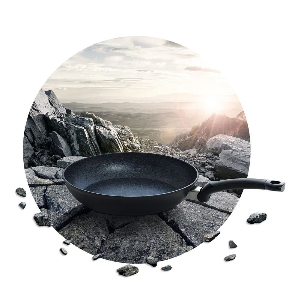 - Revestimiento antiadherente Adamant®, exclusivo de Fissler, a base de agua con partículas de carburo de silicio.