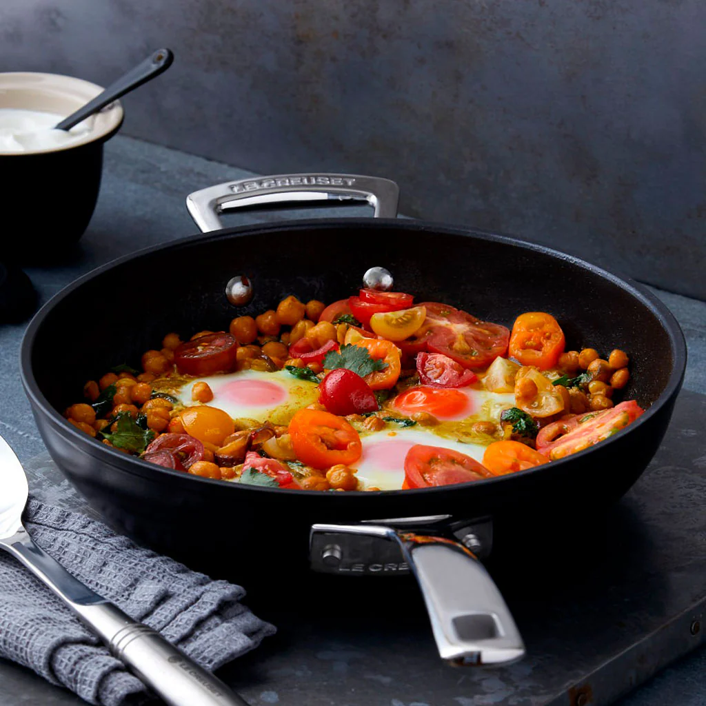 Las sartenes altas antiadherentes Le Creuset están pensadas para ser un seguro durante toda la vida en la cocina. Gracias a la altura de sus paredes podrás cocinar recetas con más caldo sin riesgo a que se derrame, preparar tortillas bien altas sin correr el riesgo de que se peguen o presentar en la mesa cualquier plato con salsa que hayas cocinado.