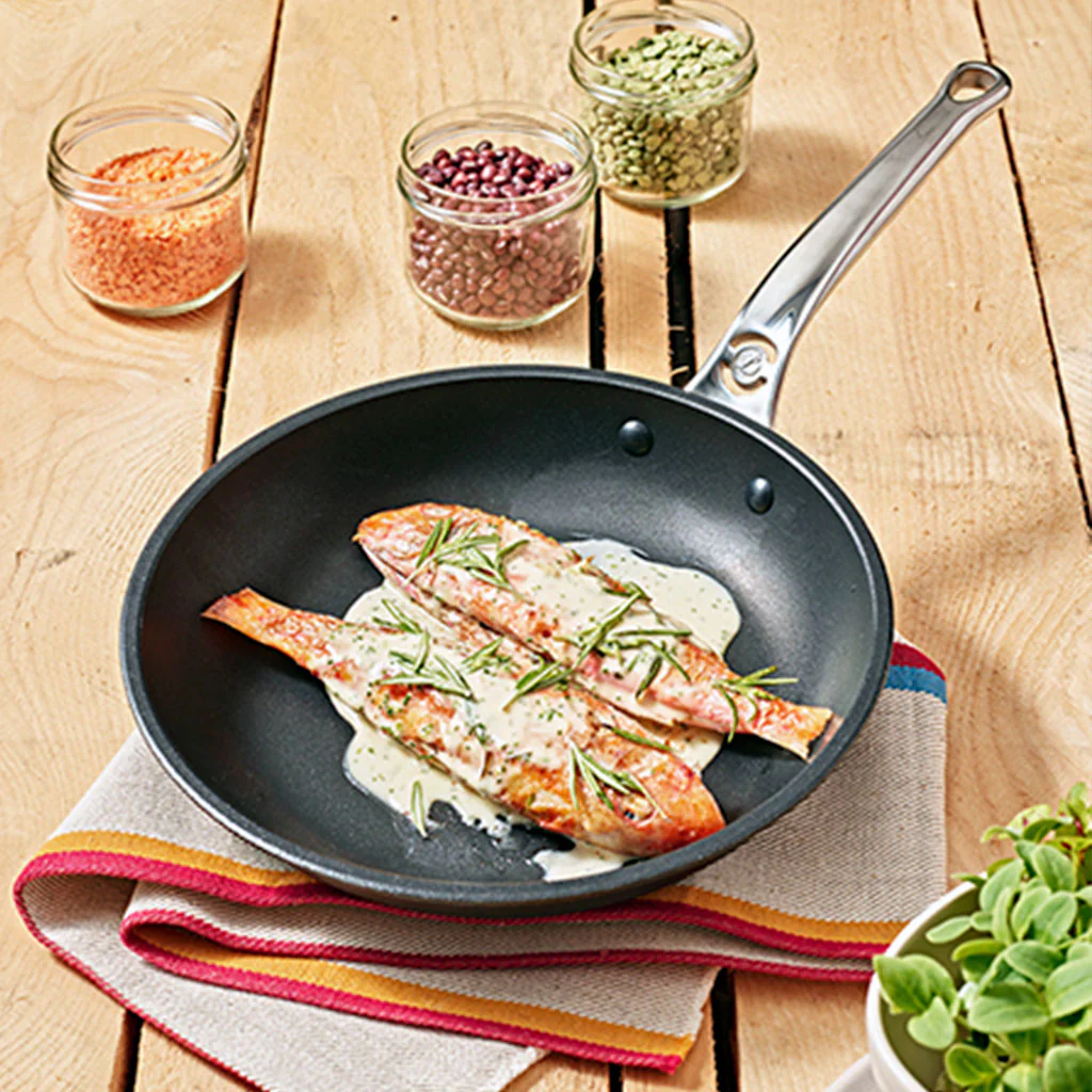 Es fabulosa para cocciones suaves, como pescado o legumbres, y el excepcional rendimiento antiadherente del recubrimiento te permite cocinar con muy poca grasa.