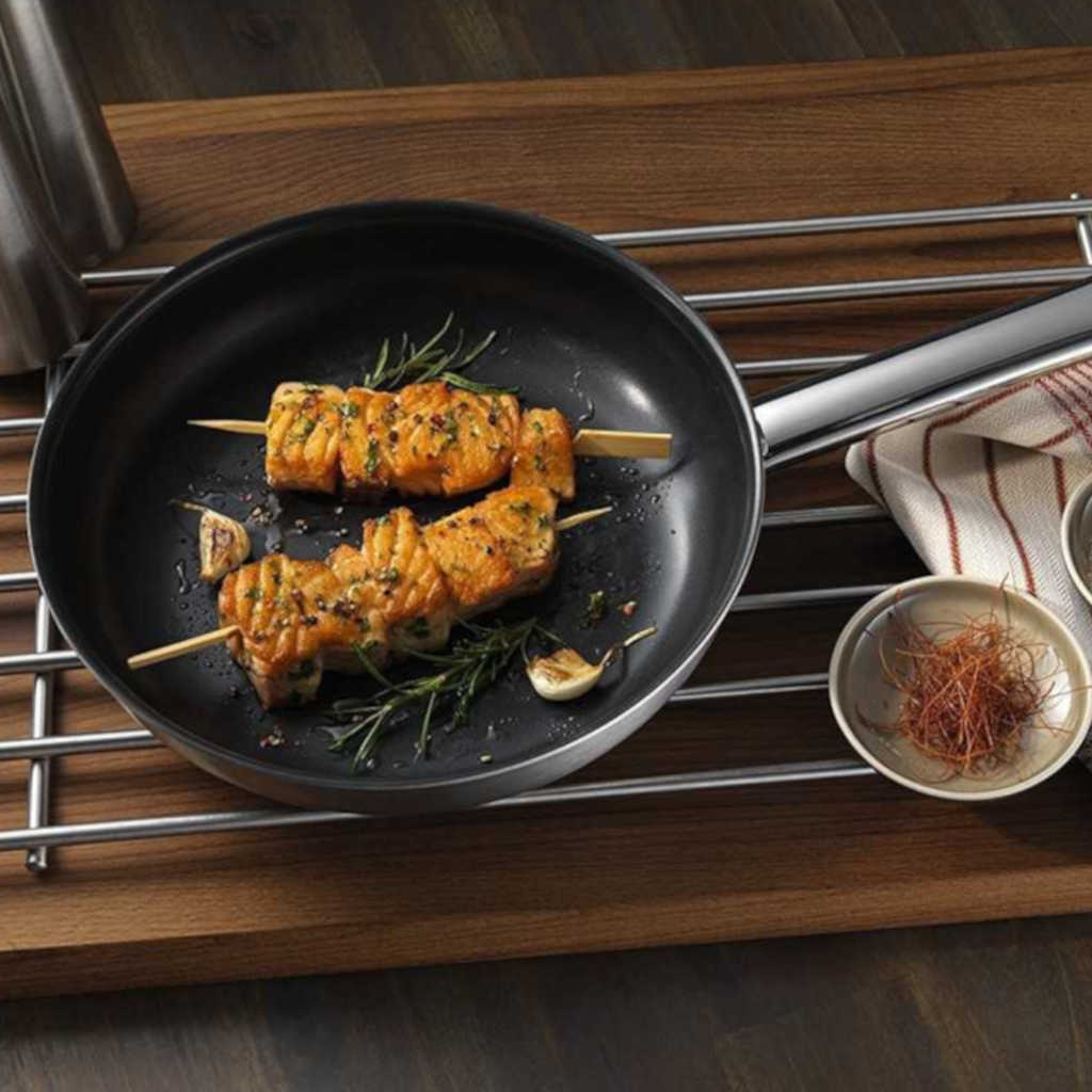 - Sartén de acero inoxidable con revestimiento antiadherente.