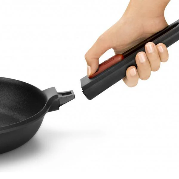 La sartén Infinity dispone de mango ergonómico desmontable de alta calidad que encaja perfectamente, sin ningún tipo de juego, y que resulta muy fácil de montar y desmontar.