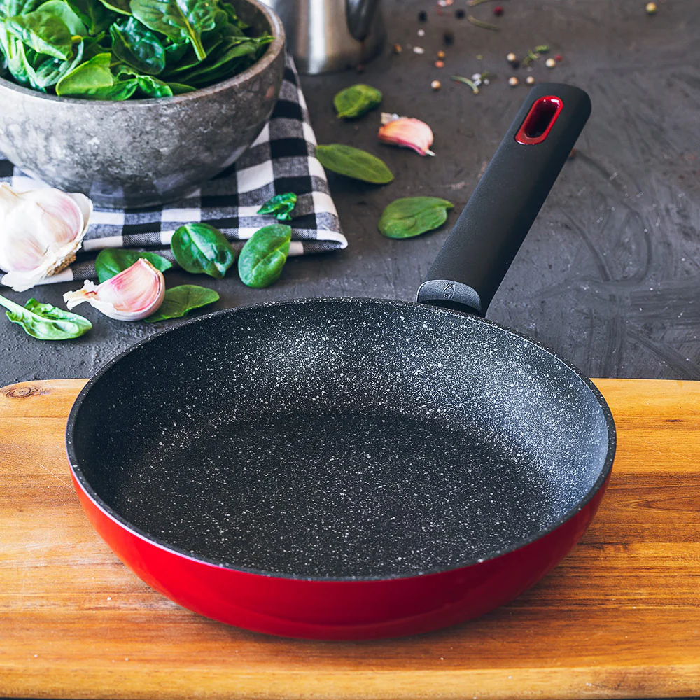 Con unos acabados rojos y un mango de lo más ergonómico, te resultará muy cómodo utilizar esta sartén en la preparación de tus platos. Casi nos atrevemos a decir que en breve se convertirá en una de tus sartenes favoritas. ¿Te atreves a comprobarlo?