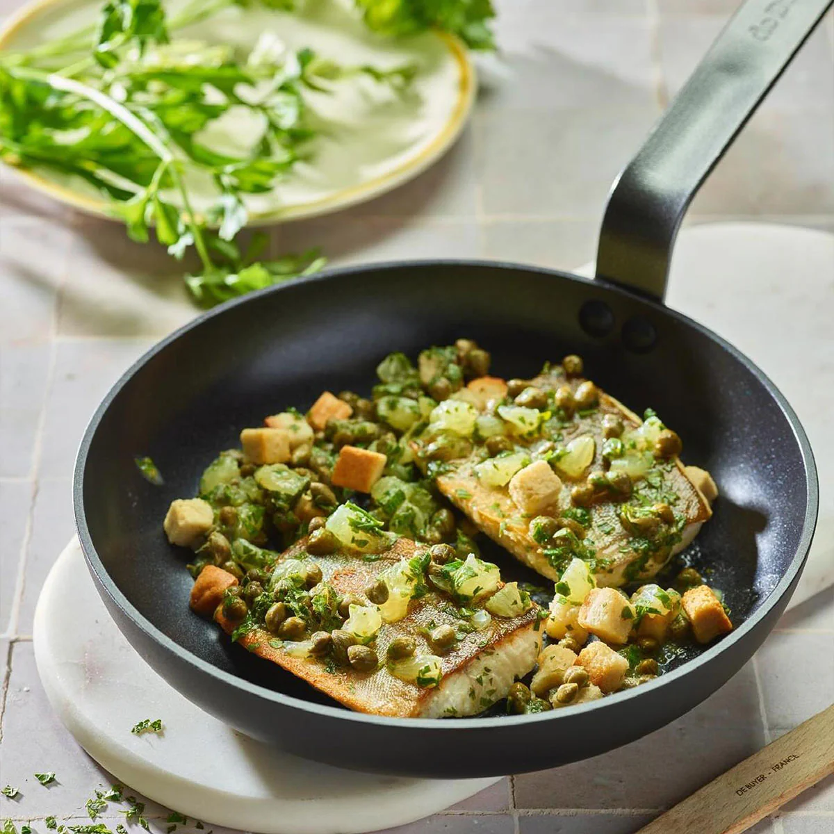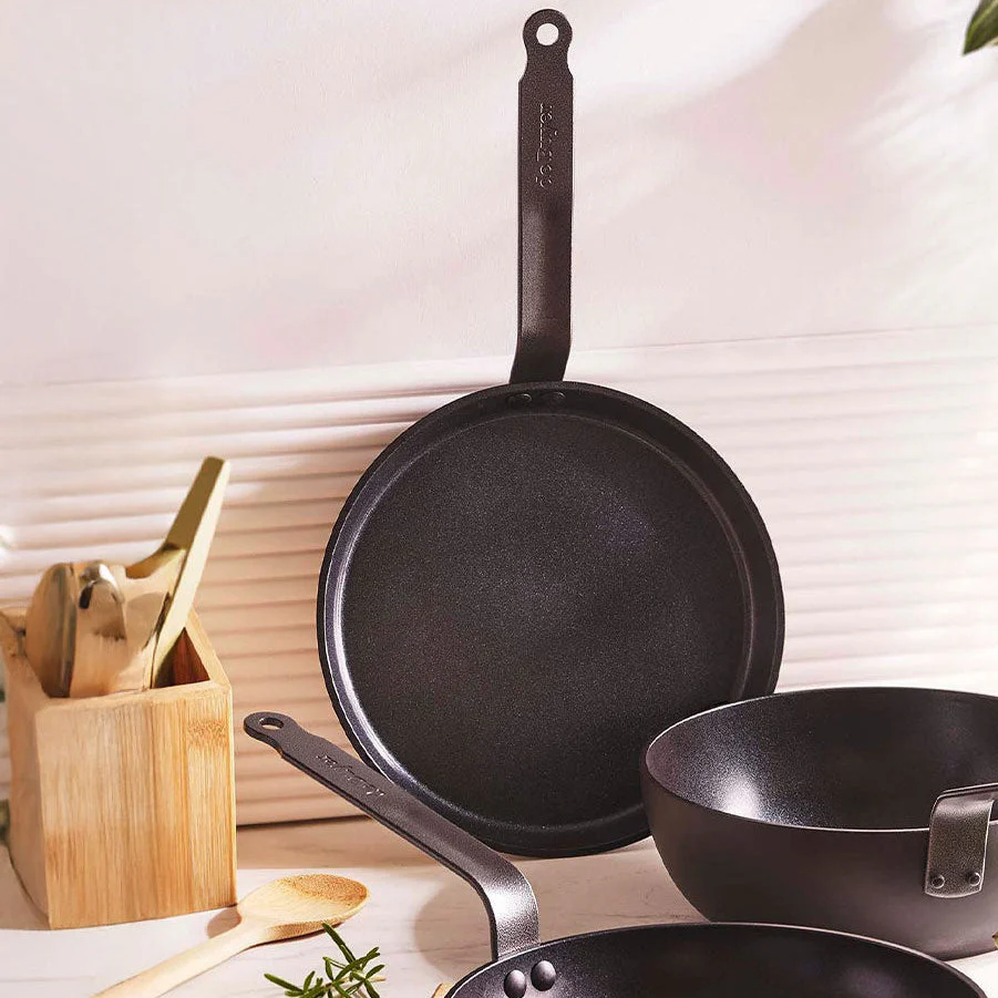 Presta atención, porque vas a descubrir la nueva sartén cerámica Ceranoa De Buyer. Esta sartén de aluminio reciclado certificado es perfecta para cocinar de forma cómoda, segura y saludable tus platos más delicados. El mango con curvatura francesa facilita su manejo. Su elegante diseño de corte lionés, sin ángulos, con bordes altos y forma bombeada, es ideal para voltear los alimentos, y proporciona más capacidad. Su revestimiento cerámico, totalmente libre de PFAS, destaca por su excelente antiadherencia. Una sartén que no puede faltar en tu cocina y en la que no se te pegará nada.