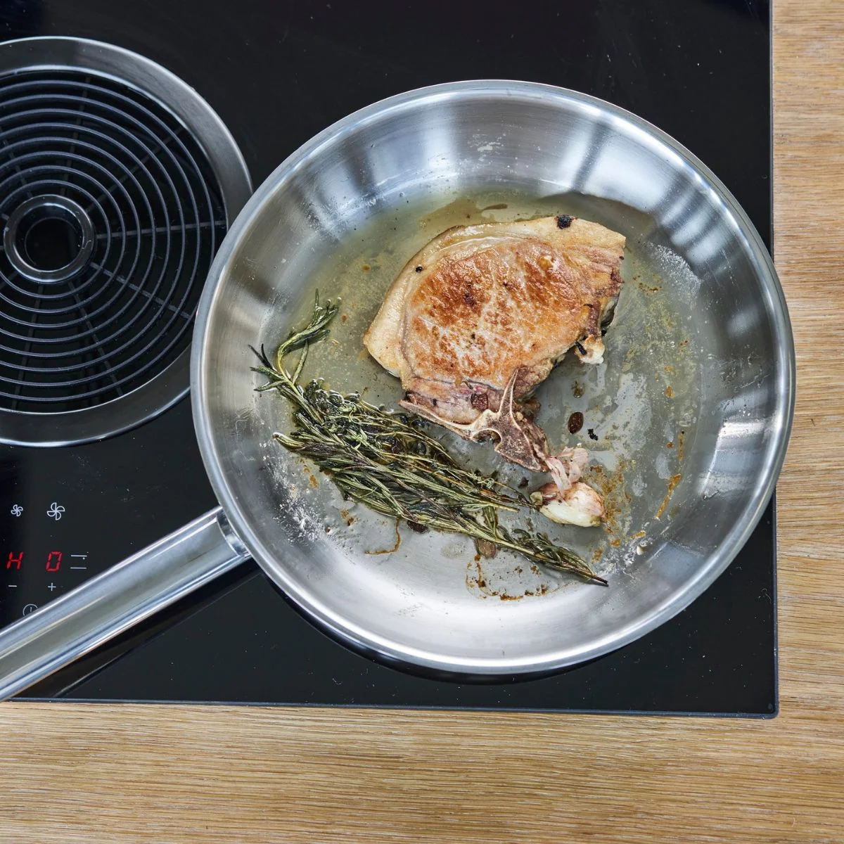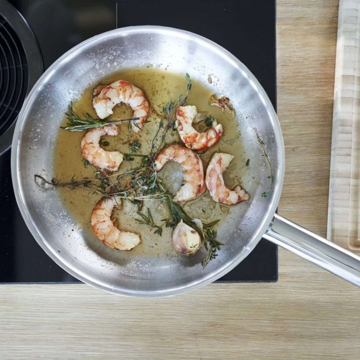 - Sartén de acero inoxidable de construcción multicapa.