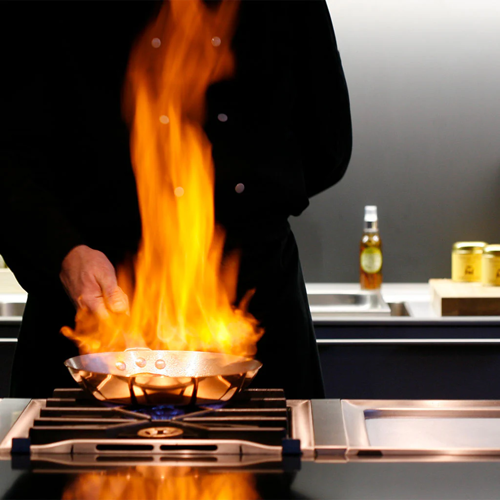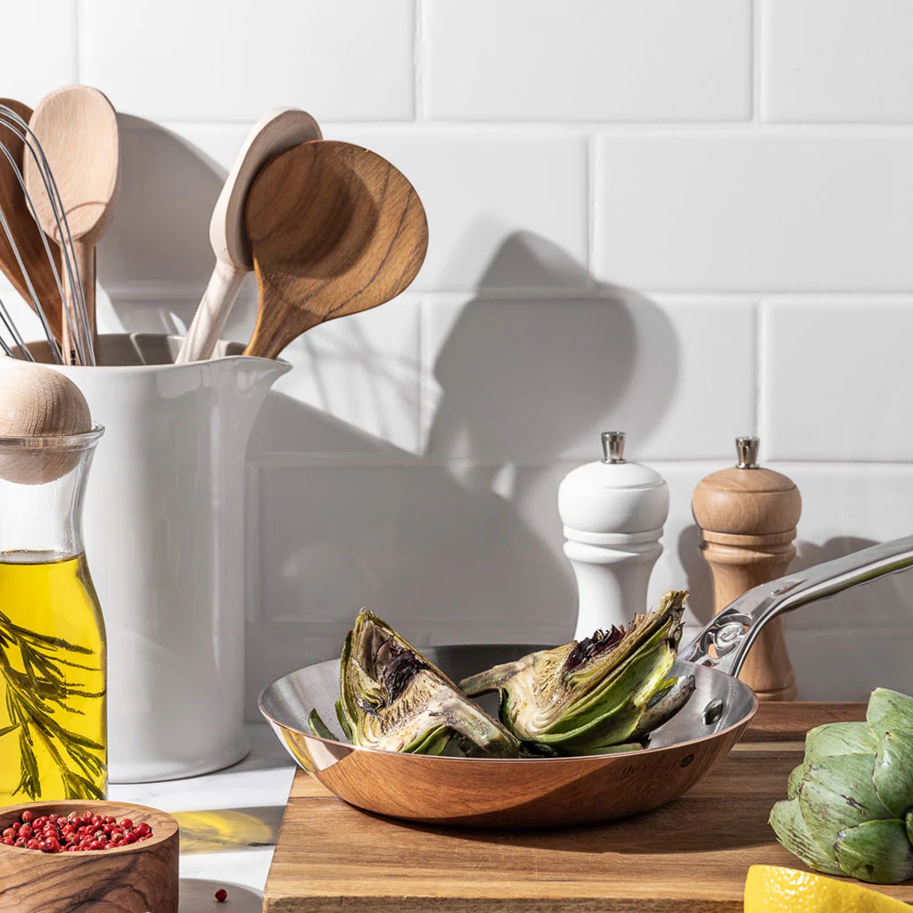 - La fabricación de la línea Prima Matera se realiza en Francia y requiere más de 18 pasos, entre ellos el estampado o el pulido manual del cobre, que se realiza siguiendo una antigua tradición artesanal y que convierte a cada utensilio en una pieza única.