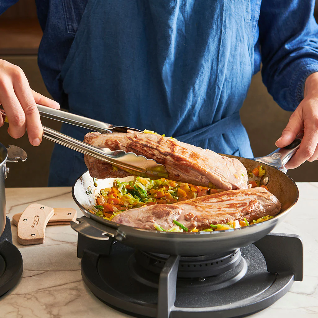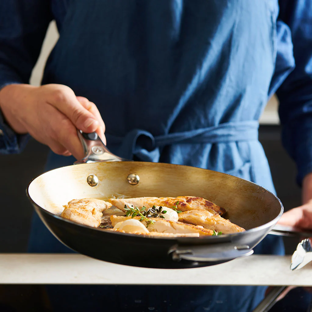 Si necesitas una tapa compatible para cocinar con la sartén Mineral B Loqy, puedes adquirir la nueva Tapa de acero inoxidable para sartenes De Buyer, una tapa universal perfecta para sartenes de 20 a 32 cm.