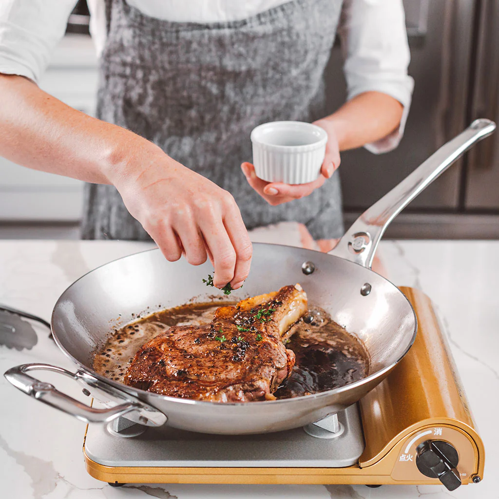 - De lo más versátil, es una sartén ideal tanto para dorar o asar carnes como para saltear vegetales o hacer huevos fritos.