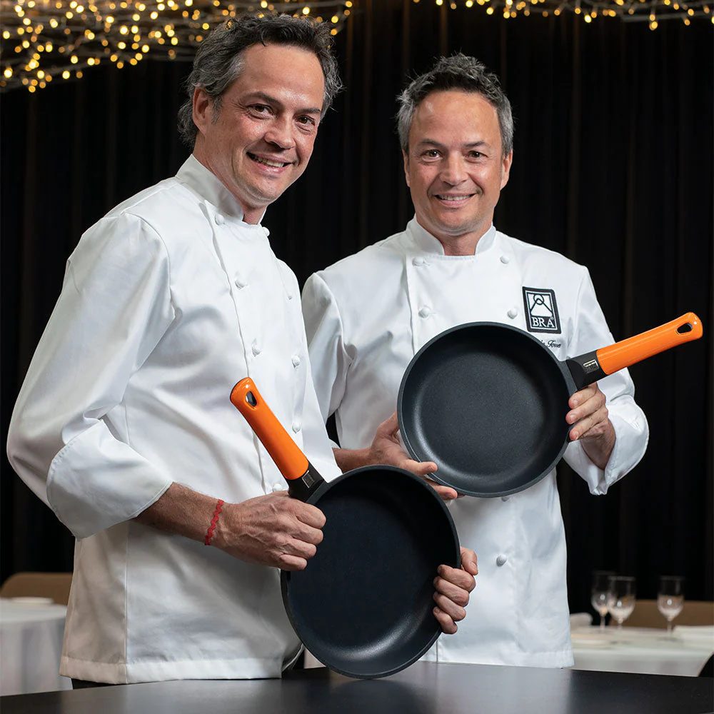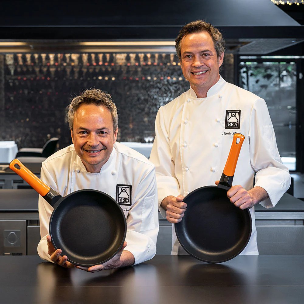 La Sartén Efficient Orange es una de las más populares de BRA , una sartén antiadherente de aluminio fundido con un característico mango naranja. En esta versión de Sartén Honda, su profundidad te proporciona mayor capacidad para poder elaborar recetas caldosas (desde arroces a guisos), frituras sin salpicaduras o trabajar más a modo de wok. Gracias a su construcción en aluminio fundido, es una sartén robusta y duradera, y la calidad de su antiadherente Platinum Plus libre de PFOA le confiere no solo una superficie en la que no se pega nada, sino también durabilidad. ¡Trátala como se merece y te dará mucho tiempo de alegrías!