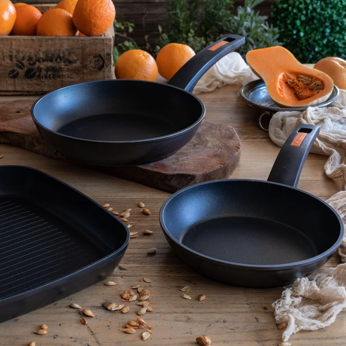 Las sartenes Fuego están fabricados en aluminio forjado y con una base de elevado espesor en la base. Su antiadherente de doble capa le confieren resultados antiadherentes de lo más confiables, y es apta para todo tipo de cocinas.
