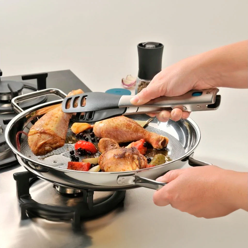 ¡Esto te gustará! Dispone de 2 asas, lo que la hace ideal también para usar como cacerola o paellera, siendo también una parrilla perfecta: el fondo de abeja en acero inoxidable te asegura una conductividad elevada del calor, y te permite recrear las condiciones de altas temperaturas de las parrillas y sartenes de hierro a pesar de ser una sartén con antiadherente. Además, gracias a ese mismo fondo de panel de abeja, ¡tus carnes y pescados quedarán marcados como en una auténtica parrilla profesional!