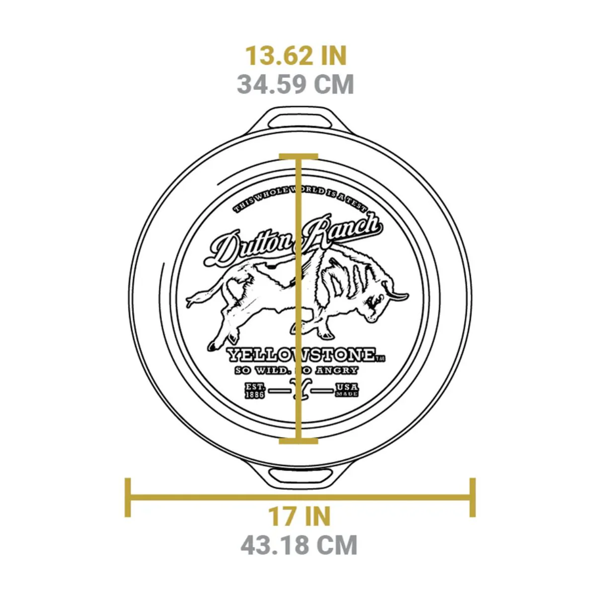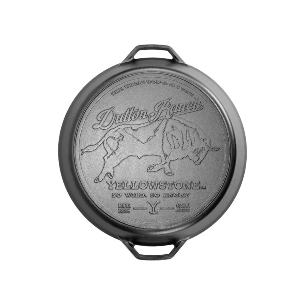 - Grabado en la base de la sartén de un toro salvaje, con la icónica frase de la serie Yellostone™: «So wild, so angry» (Tan salvaje, tan furioso).