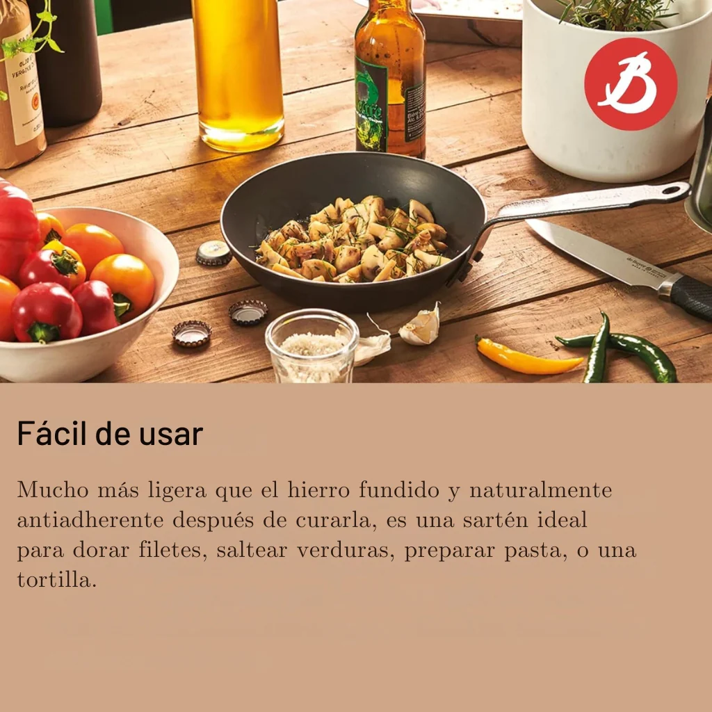 Las sartenes De Buyer de acero carbono (de hierro) se caracterizan por: