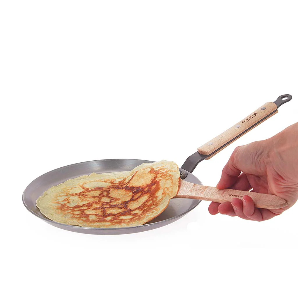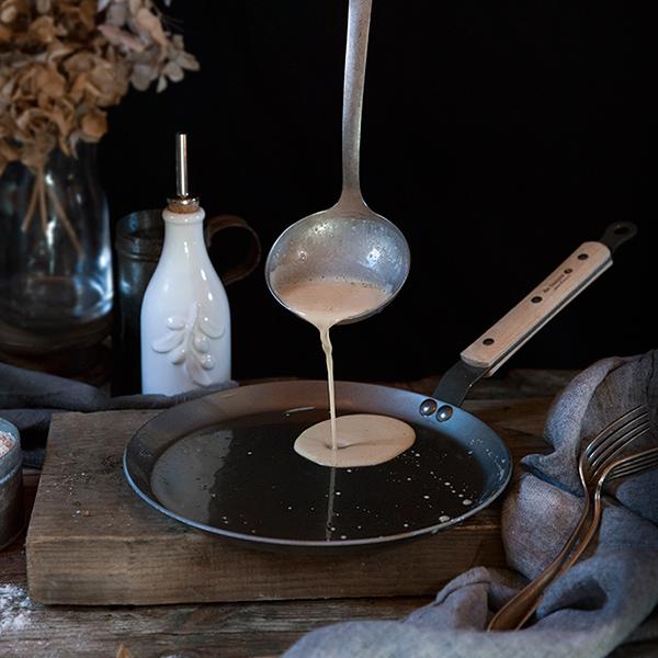 La nueva crepera de hierro Mineral B De Buyer con mango de madera de haya es fantástica para cocinar suculentas crêpes en casa. Una joya entre las sartenes de hierro Mineral B de De Buyer.