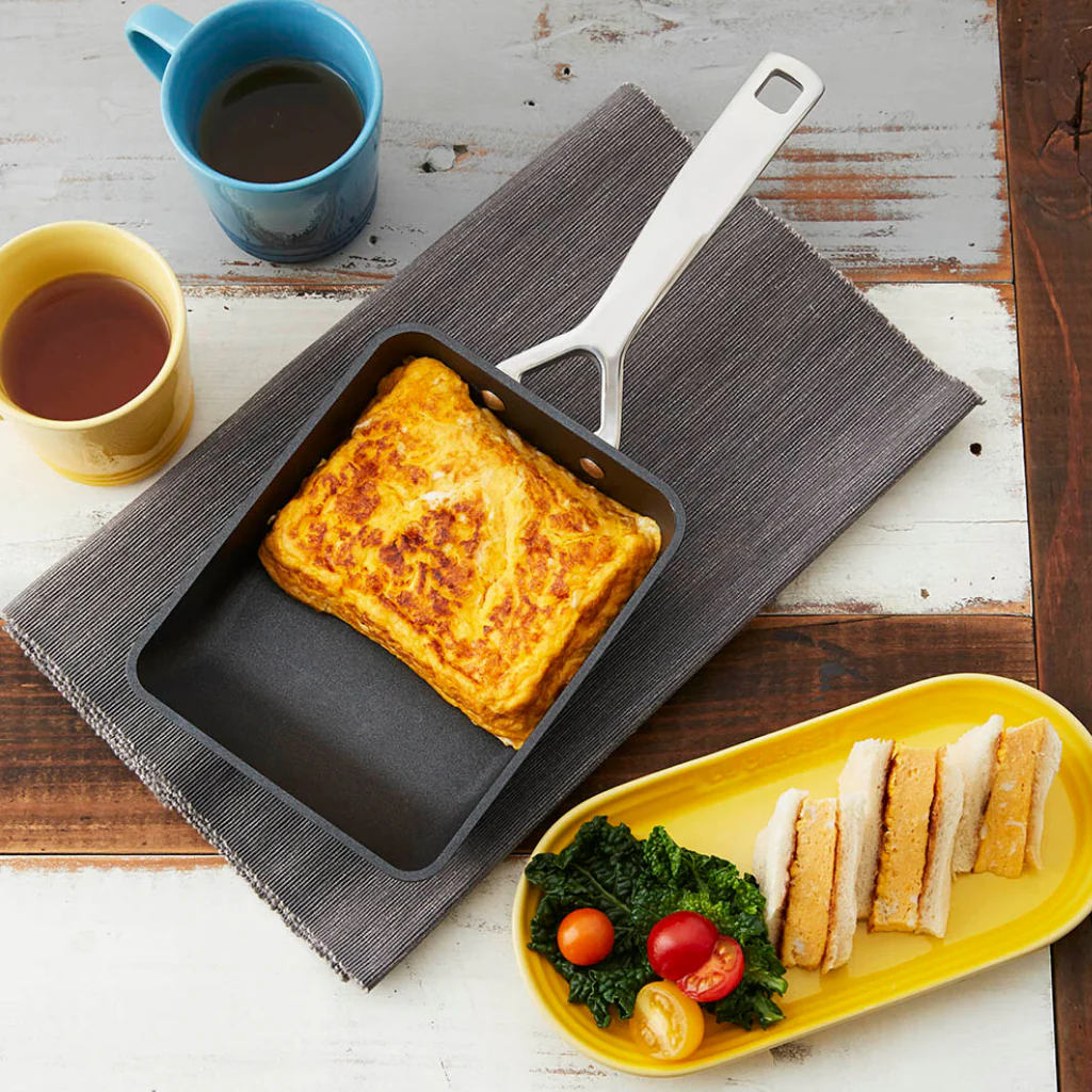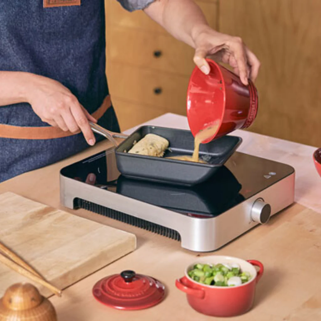 La sartén rectangular de aluminio forjado antiadherente de Le Creuset es una sartén inspirada en las sartenes para hacer tortillas como las hacen en Japón, y la verdad es que resulta ideal para ello.