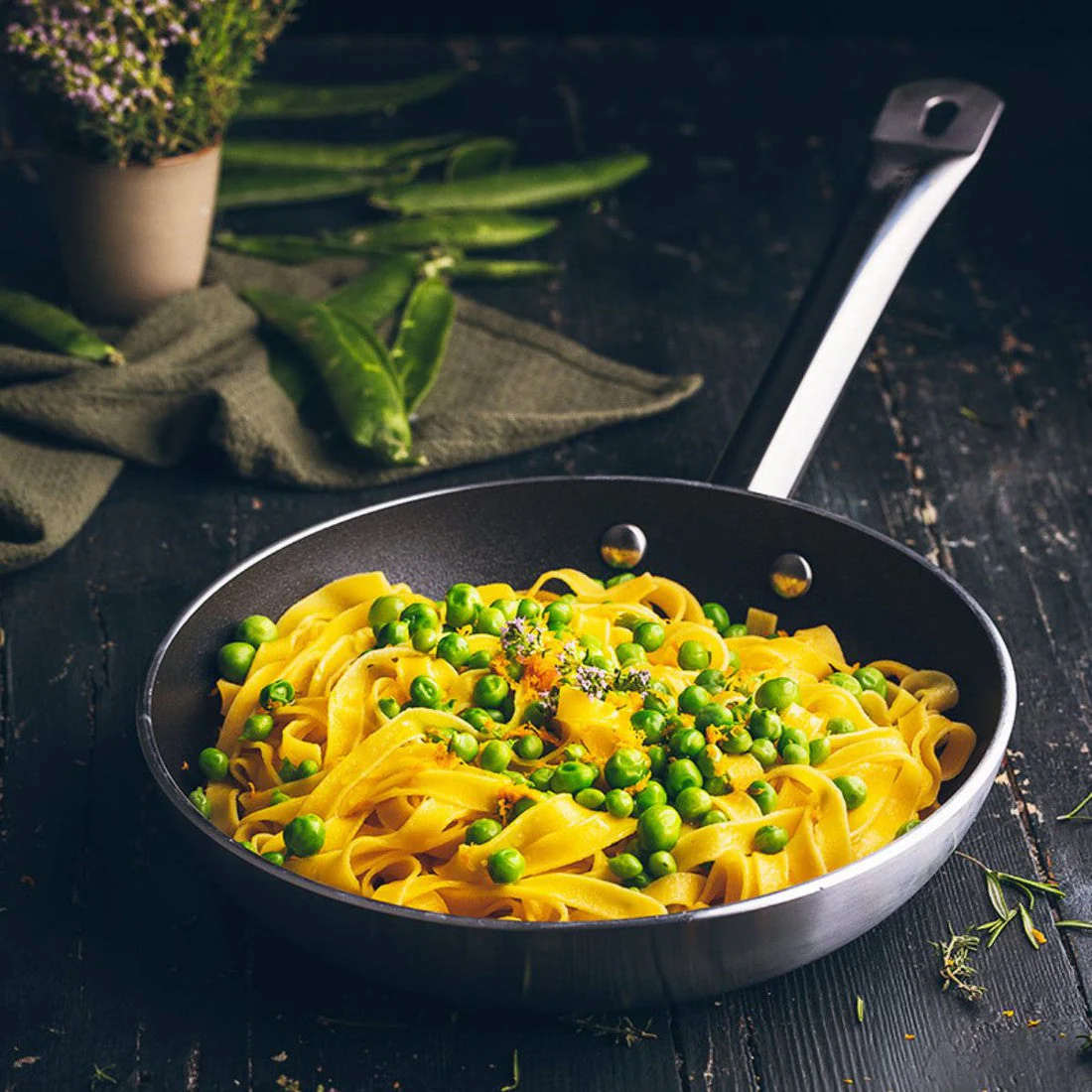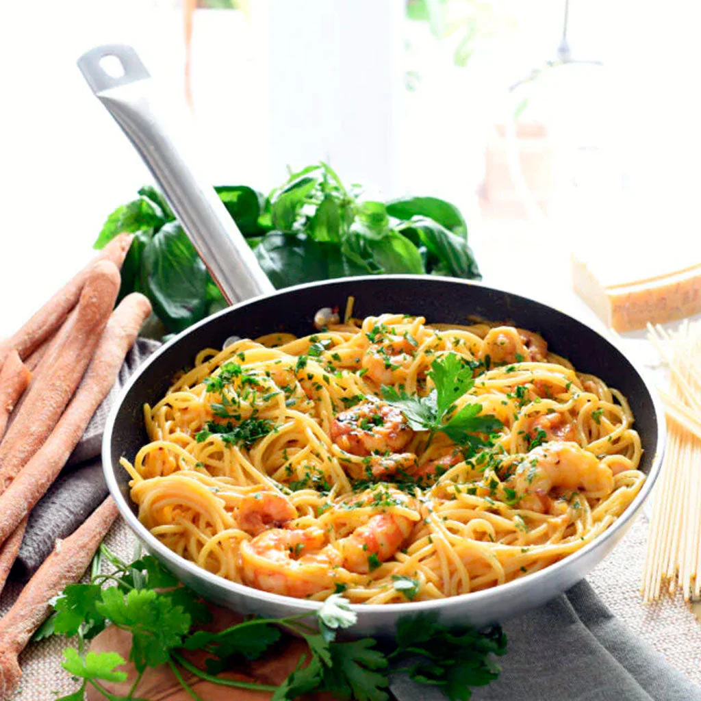 La Sartén Profesional Antiadherente Exterior Inox Horeca de Monix es una sartén bien deseada por cualquier chef casero. Combina una construcción robusta con una construcción de base férrica que garantiza un rápido calentamiento, y un antiadherente reforzado con partículas de titanio que la hace extremadamente resistente a la abrasión, aparte de que también garantiza una liberación fácil de los alimentos, contribuyendo a una cocina saludable y eficiente. ¿Ya te hemos convencido? Con razón: trátala bien, respetándola con un calentamiento a fuego suave (como toda sartén antiadherente se merece) y una limipeza a mano con esponja suave, y verás que te devuelve ese cariño con mucho tiempo de recetas deliciosas (¡y sin pegarse nada!).
