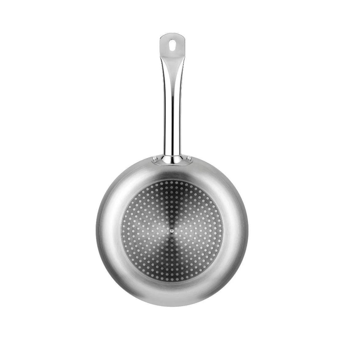 - Fondo Difusor Innovador: Equipada con un fondo difusor de acero inoxidable AISI 430 (ferrítico), con una técnica de empotrado mecánico y una chapa de agujeros, es compatible con todas las fuentes de calor, incluyendo la inducción, garantizando una cocción uniforme y optimizada.