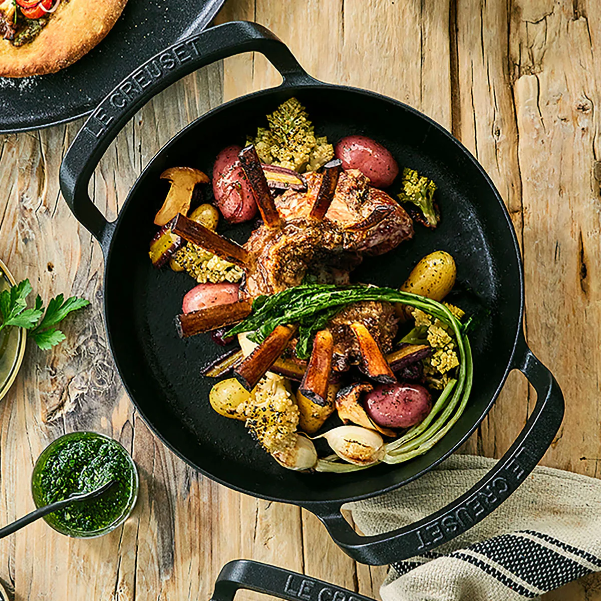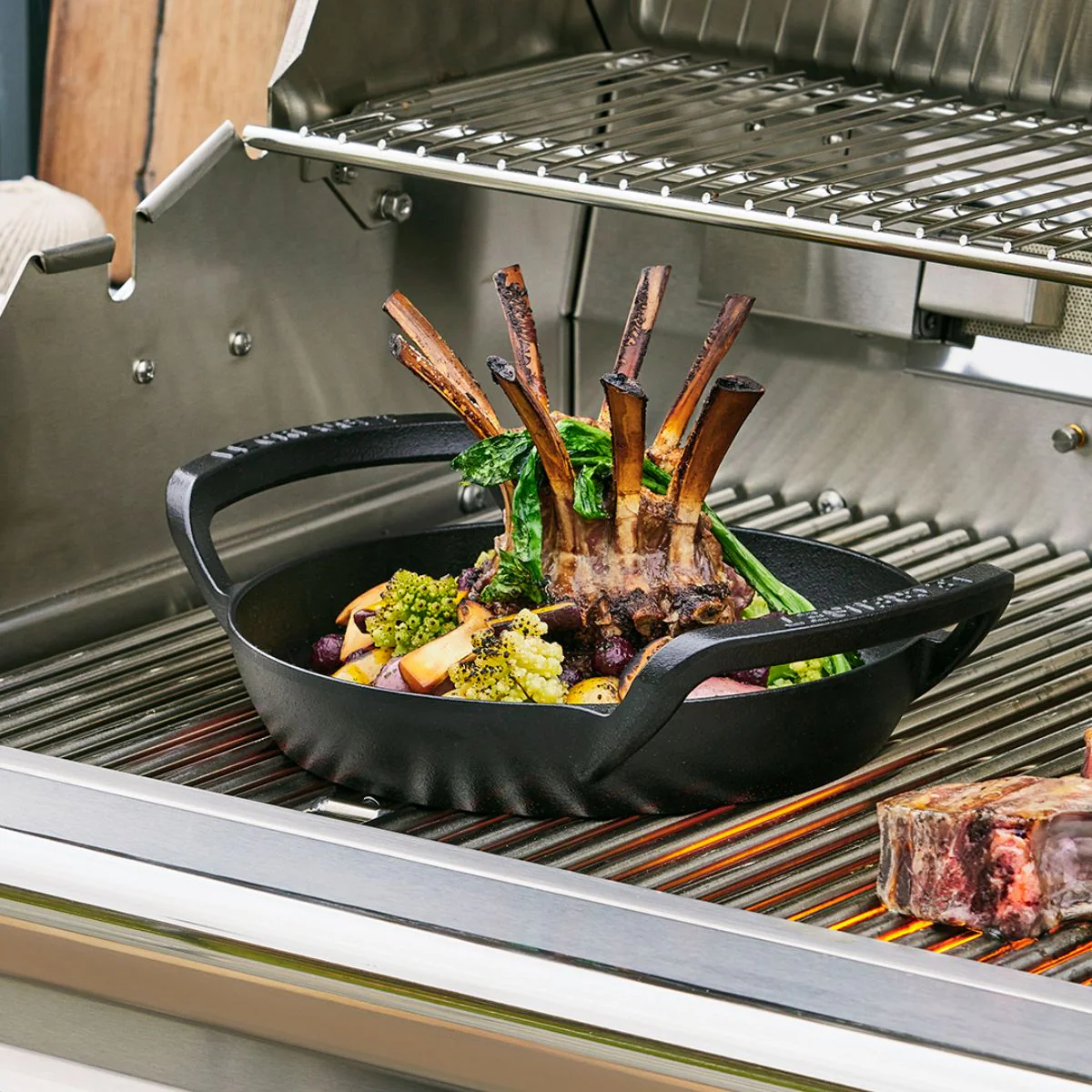 Esta sartén de 26 cm ofrece una gran versatilidad gracias a sus 3,7 cm de profundidad, que permiten remover y voltear sin problema los alimentos, para que puedas cocinar cualquier receta en la barbacoa y también en tu cocina de gas, o preparar unos exquisitos asados en el horno. Única y muy funcional, ¡esta skillet es una todoterreno!