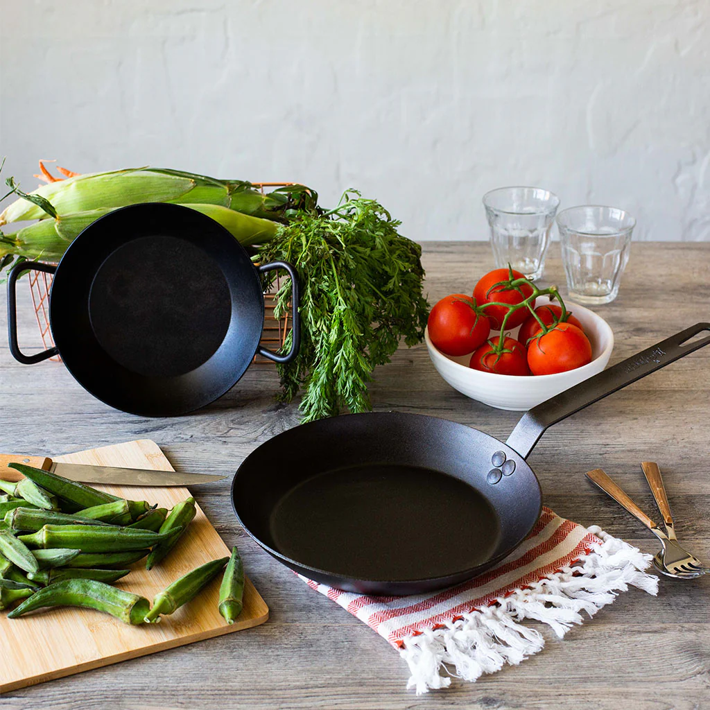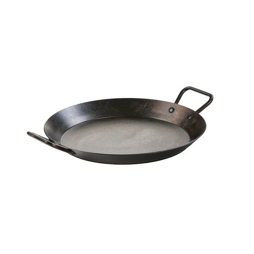 Las dos amplias asas de la Sartén de acero carbono curado Lodge te permitirán manejar esta sartén de hierro con comodidad, para llevarla de la cocina, del horno o de la barbacoa a la mesa con total seguridad. La sartén tipo paellera está fabricada en acero al carbono sin antiadherentes y es perfecta para freír, dorar, saltear, cocinar a la plancha de forma sana y natural, asar en el horno, en la barbacoa o preparar unos arroces espectaculares sobre la llama de una hoguera. ¡