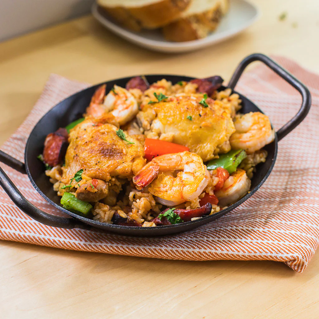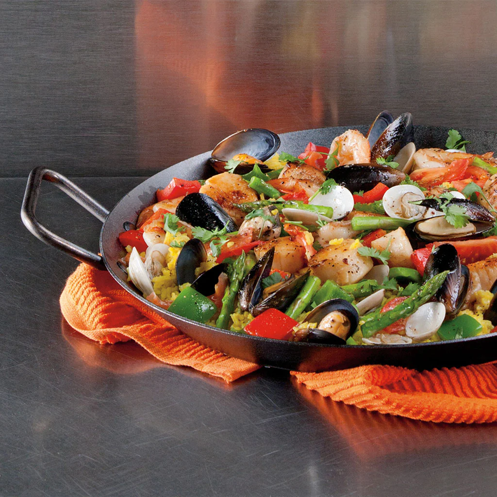 Está disponible en formato de paellera individual (de 20 cm) y amplia paellera familiar (de 38 cm).