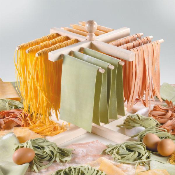 Este soporte de madera es ideal para extender y secar la pasta hecha en casa. Dispone de doce brazos y resulta muy fácil de montar.