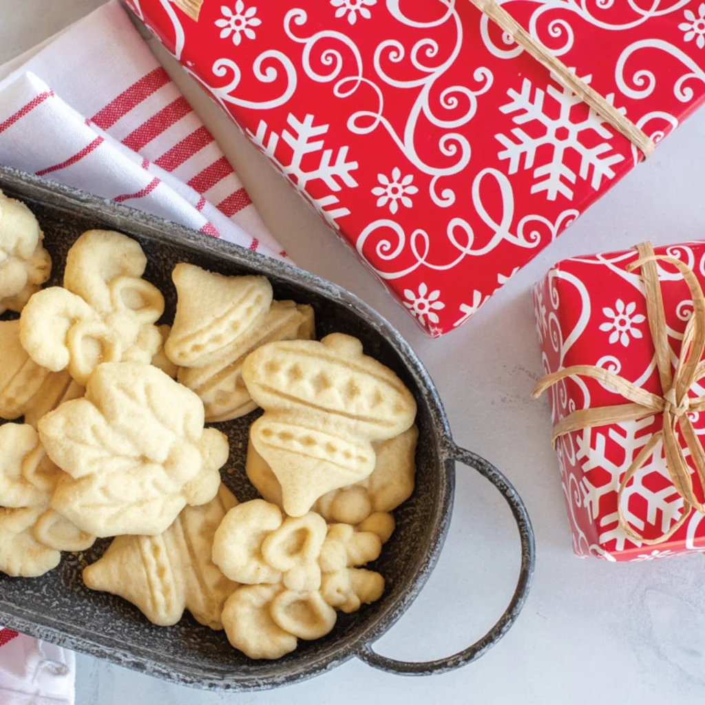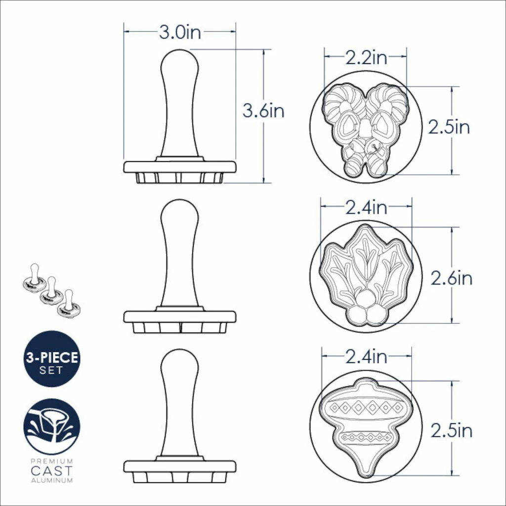 ¡Prepara tus galletas con estos increíbles sellos para galletas «Holiday Cookie» de Nordic Ware! Estos sellos están diseñados con motivos festivos como copos de nieve, árboles de Navidad y renos para darle un toque cálido y amigable a tus deliciosas creaciones.