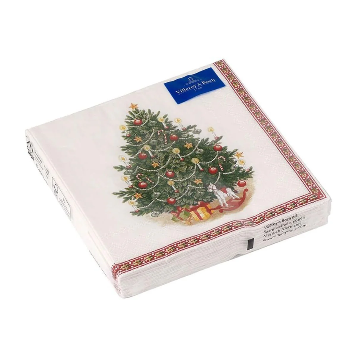 Las Servilletas de papel Toy’s Fantasy Villeroy & Boch son el complemento ideal para vestir tu mesa más navideña. Este pack de 20 servilletas es perfecto para lucir de la forma más festiva, sin que tengas que preocuparte por limpiar las manchas. Con la encantadora ilustración del árbol de Navidad adornado, con los regalos listos para abrir y enmarcado por una cenefa roja con hojas de acebo, estas servilletas de papel son un elemento decorativo tan precioso como práctico.