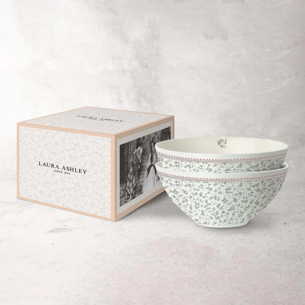 Los cuencos de porcelana del Set 2 boles Wild Clematis de Laura Ashley son ideales tanto para tus desayunos, como para presentar unos aperitivos o saborear el puré de la cena. Versátiles y elegantes, lucirán cada día en tu mesa. El conjunto se presenta en una bonita caja, ideal para regalar.