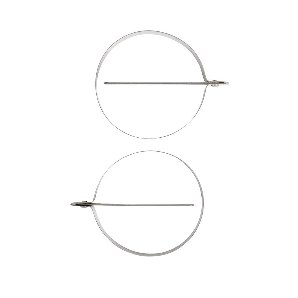 - Set de 2 moldes circulares de acero inoxidable con asa plegable.