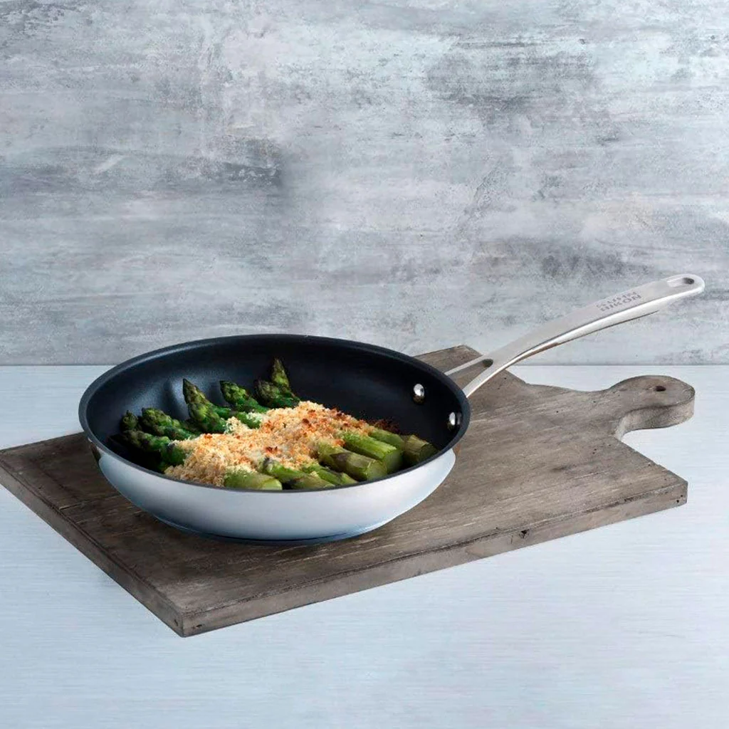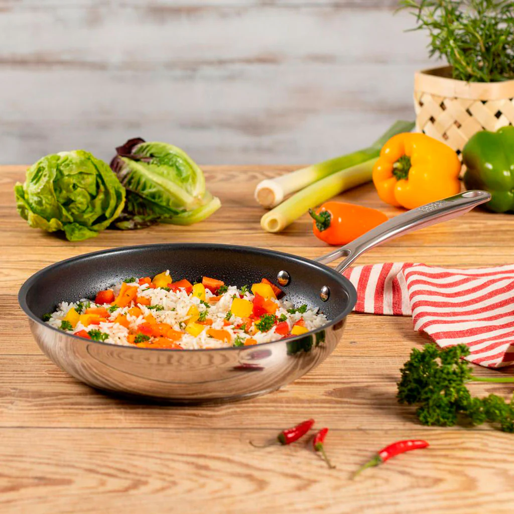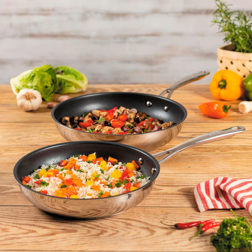 Gracias a su capa exterior de acero inoxidable ambas sartenes pueden coger mucha temperatura en muy poco tiempo, por lo que son ideales para sellar los alimentos a la perfección, conservando sus jugos y sabores. Podrás usarlas tanto en el fuego como en el horno, para asar, dorar o gratinar sin cambiar de sartén.