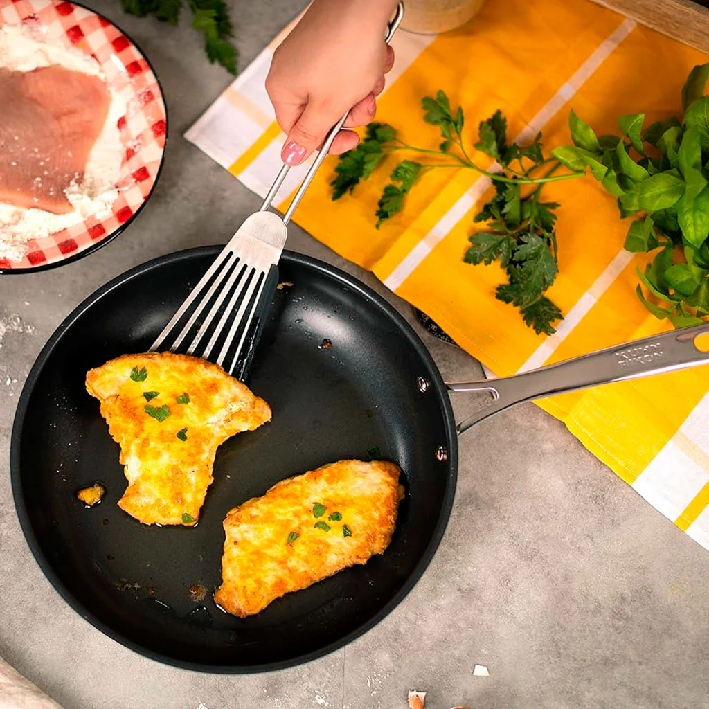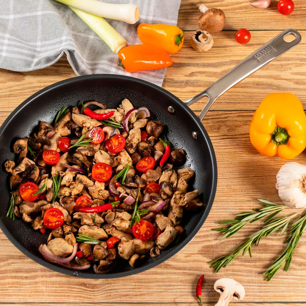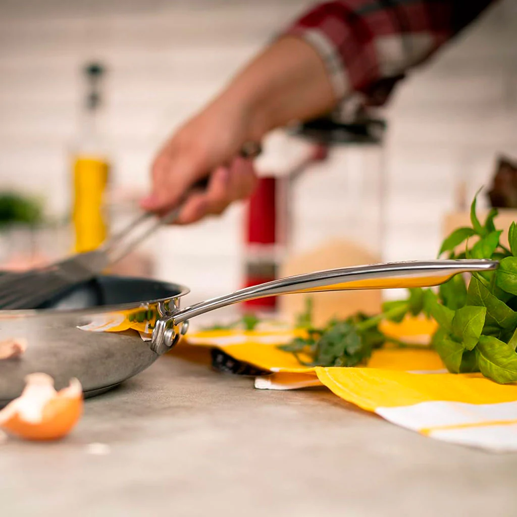 Son también estupendas para tus recetas más saludables o las que requieren cocciones delicadas, que necesitan una potencia de fuego suave y tranquila, ya que su revestimiento antiadherente de tres capas con partículas de titanio te permitirá cocinar con muy poco aceite y sin que se pegue nada.