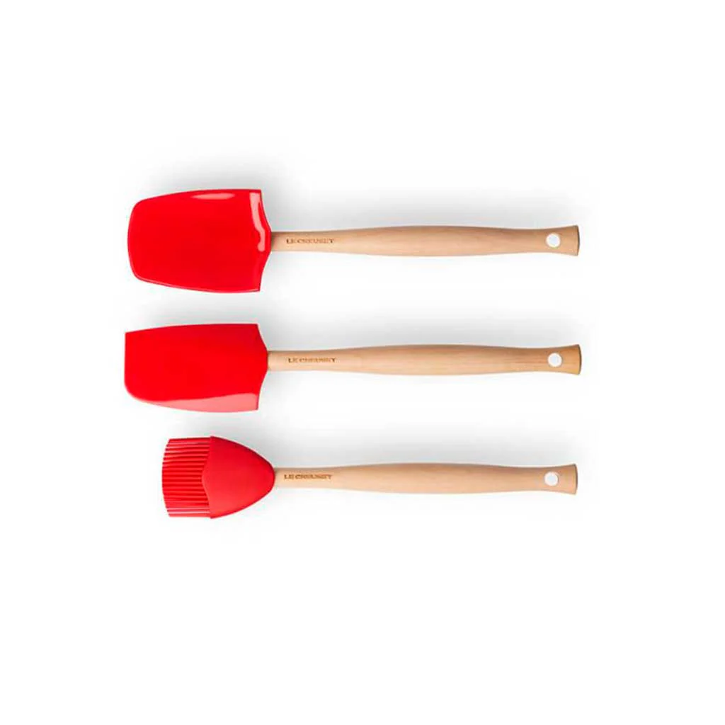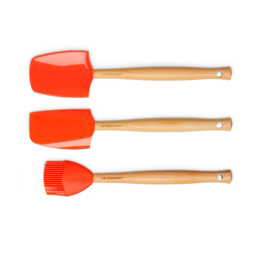 El Set de 3 espátulas Craft Le Creuset es un conjunto de 3 utensilios con cabezal de silicona, perfectos para el día a día. Un juego formado por espátula mediana, espátula cuchara grande y pincel, todos con mango de madera y en los preciosos colores de Le Creuset.