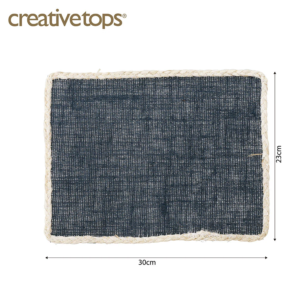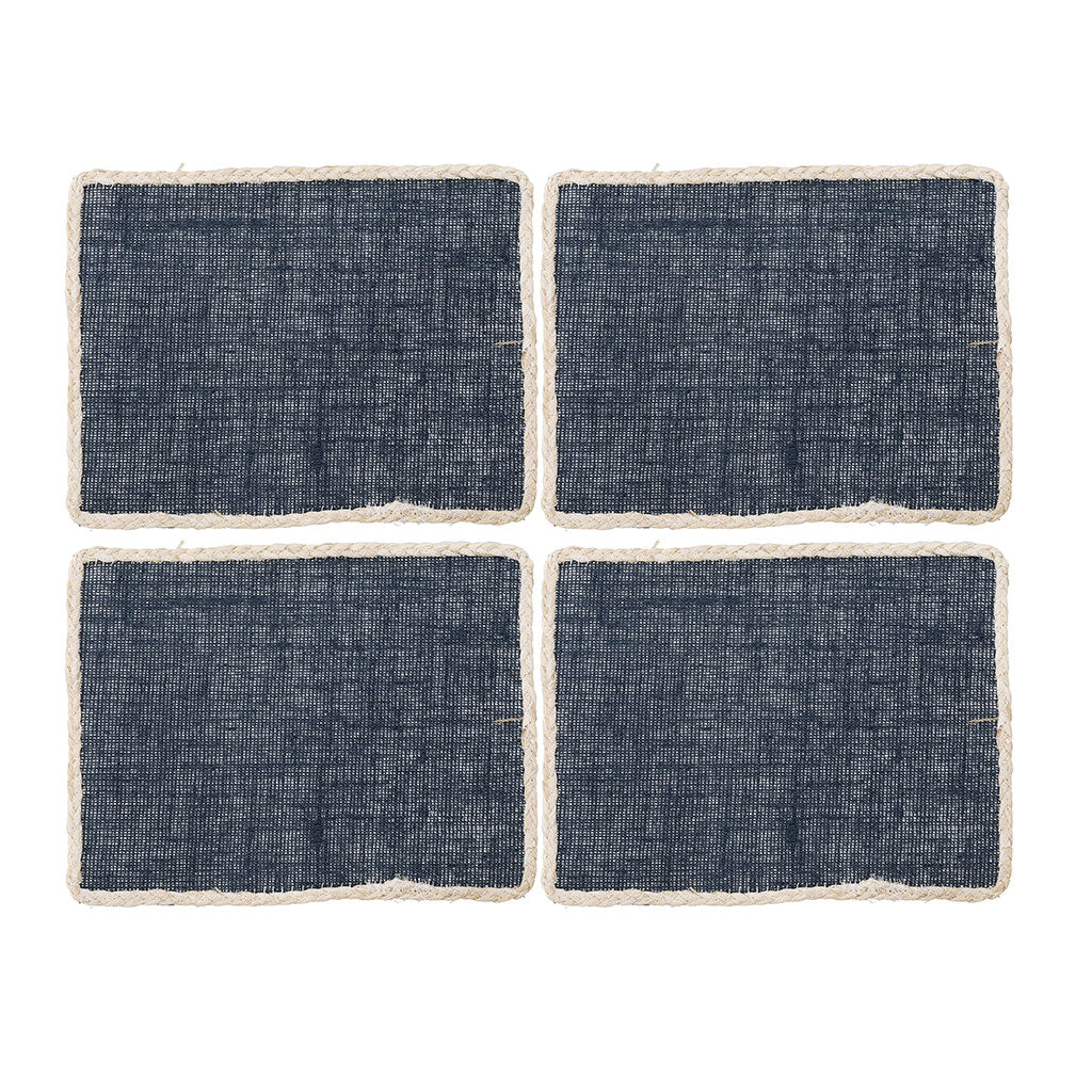 El Set 4 manteles individuales rectangulares de KitchenCraft es un conjunto de cuatro piezas de yute, ideales para usar como manteles individuales tanto sobre la mesa como con el mantel. En azul marino con un ribete trenzado blanco tiene un encantador aire rústico y son tan prácticos como bonitos.