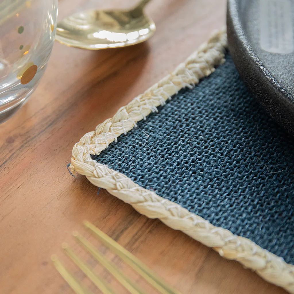 - Tanto el yute azul marino, como el ribete blanco, aportan un toque encantador.
