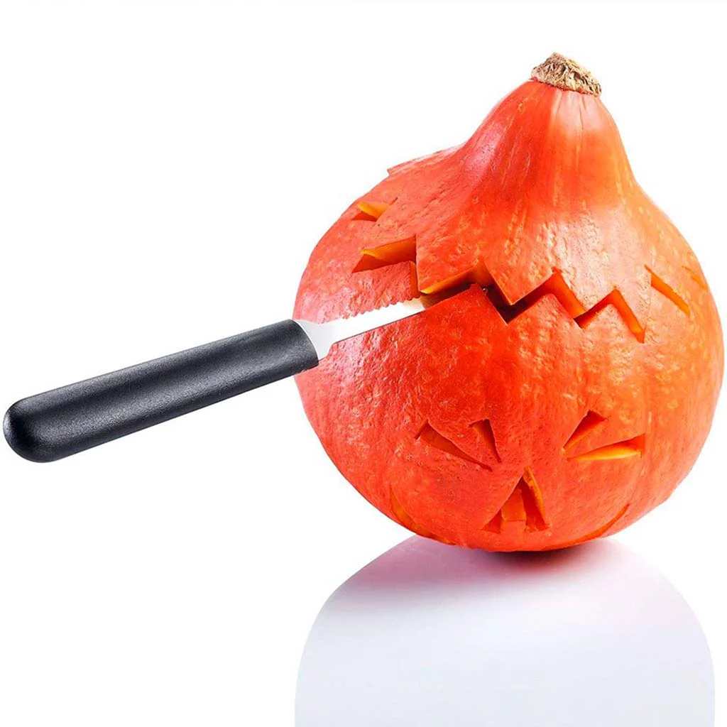 - Un cuchillo de sierra ideal para cortar calabazas, sandías y otras frutas y verduras de cáscara dura.