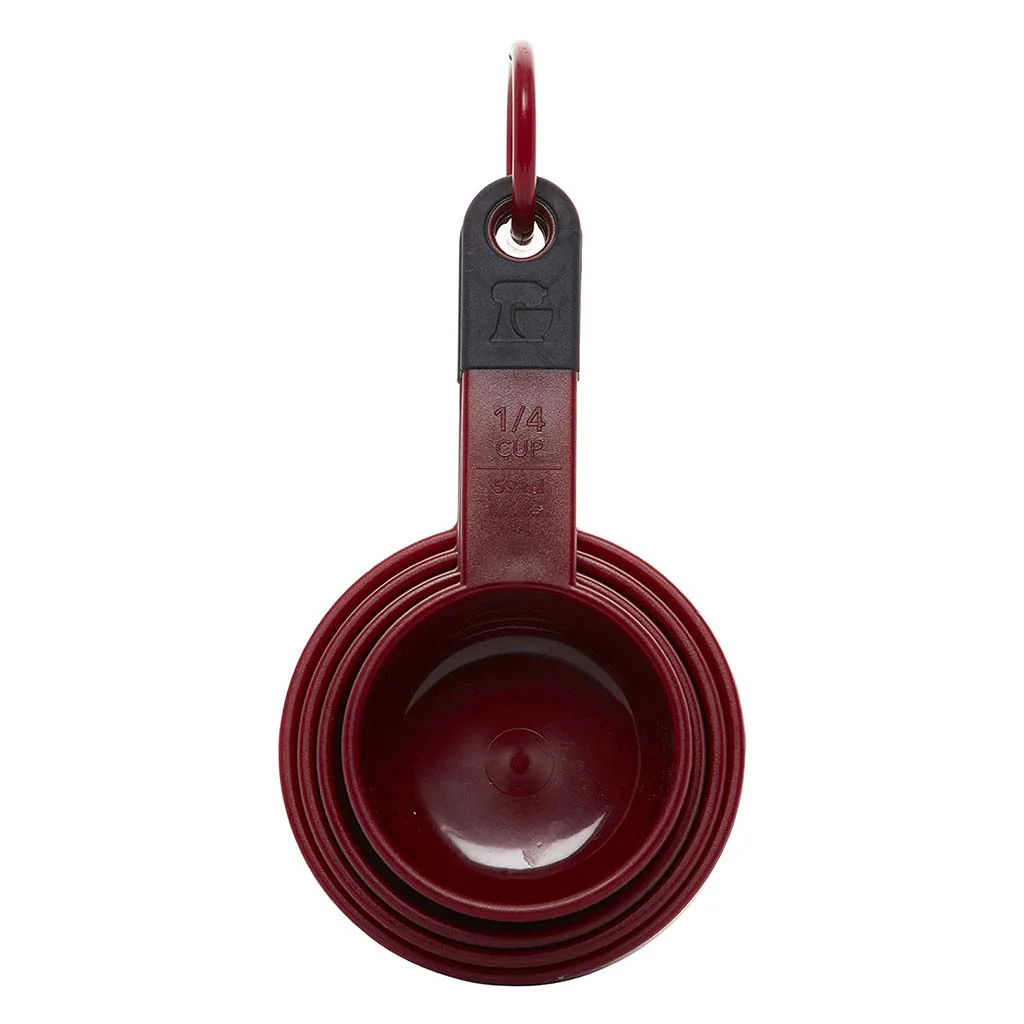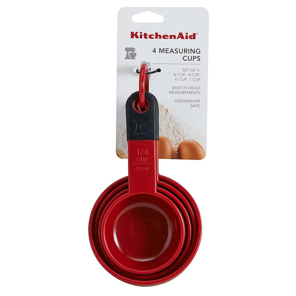 Con el Set 4 tazas medidoras KitchenAid podrás medir fácilmente las cantidades de tus recetas de repostería. Este juego de 4 cazos en el color rojo tan identificativo de la marca, es una ayuda de lo más práctica y ¡el complemento ideal para tu KA!