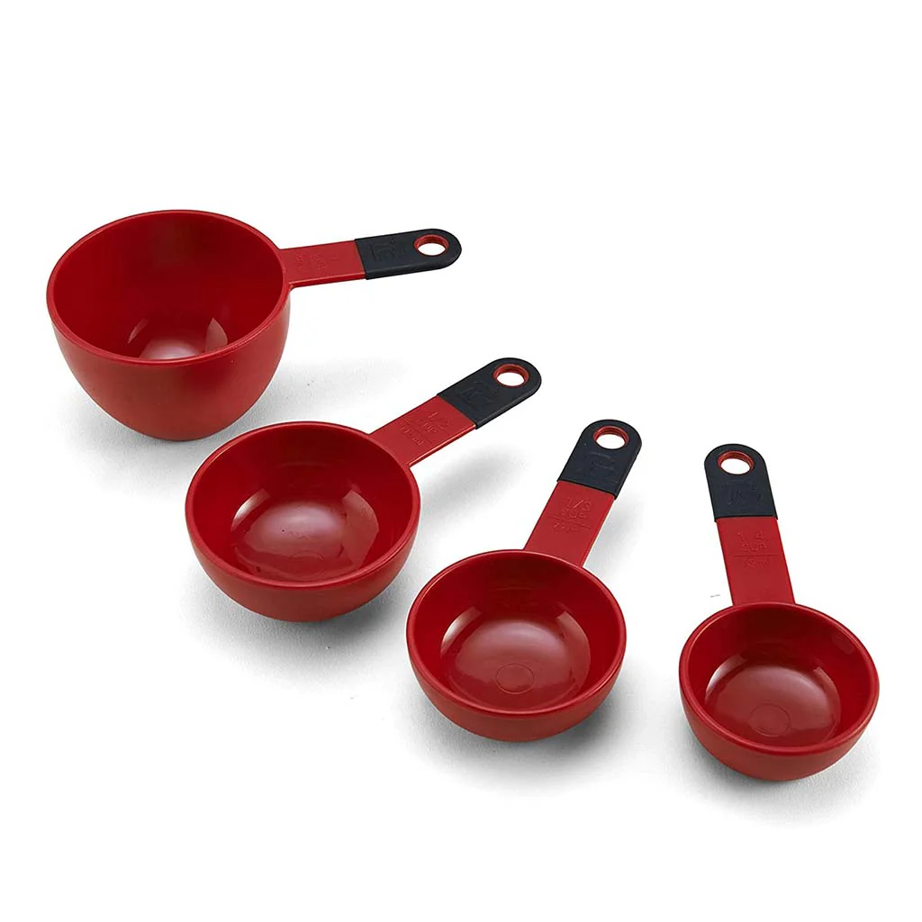 - Set de 4 tazas medidoras con anilla, fabricadas en plástico abs de gran calidad, libre de BPA.