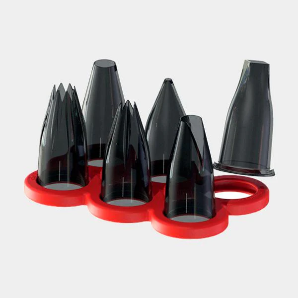 - 5 boquillas geométricas (2 cuadrados, 1 rectángulo, 1 triángulo y 1 hemisferio).